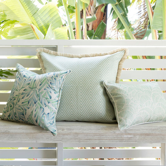Cushion Cover-Coastal Fringe Natural-Zig Zag Pale Mint-60cm x 60cm
