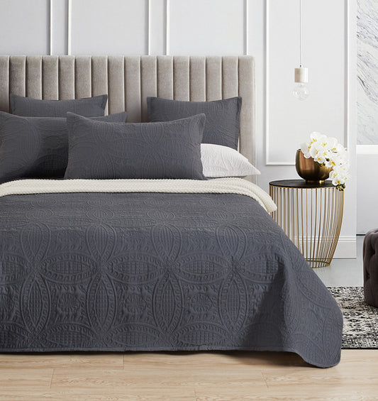 Lisbon Quilted 3 Pieces Embossed Coverlet Set-queen/king charcoal