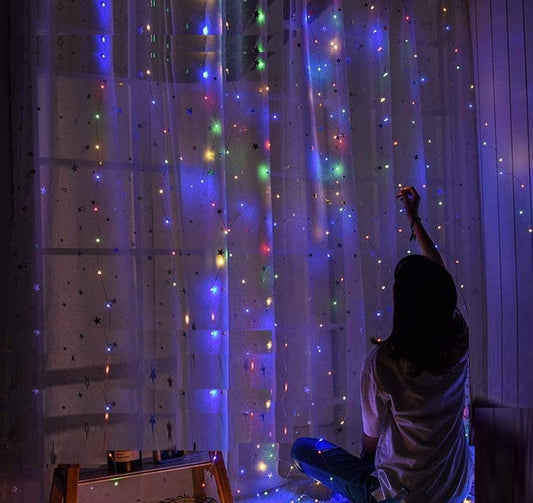 300 LEDs Window Curtain Fairy Lights 8 Modes and Remote Control for Bedroom (Multicolor, 300 x 300cm)