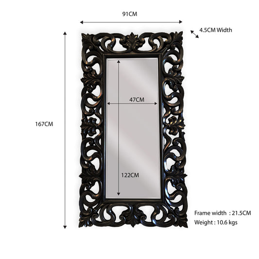 LUX Boroque Mirror - Gloss Black 91cm x 167cm