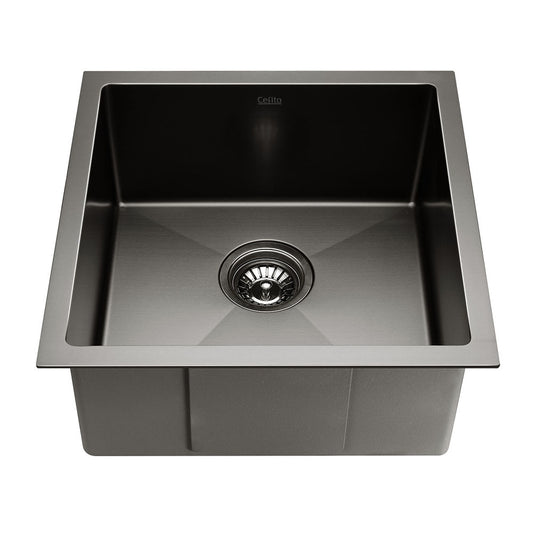Cefito Kitchen Sink 44X44CM Stainless Steel Basin Single Bowl Laundry Black