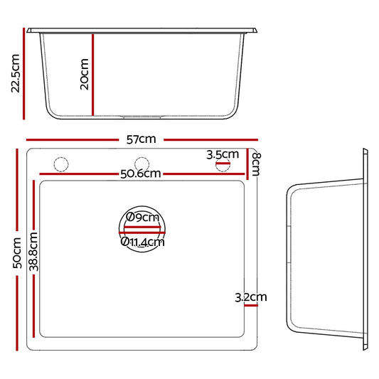 Cefito Kitchen Sink 60X45CM Stainless Steel Basin Single Bowl Laundry Black