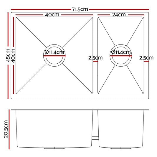 Cefito Homemade Kitchen Sink Stainless Steel Sink 71cm x 45cm