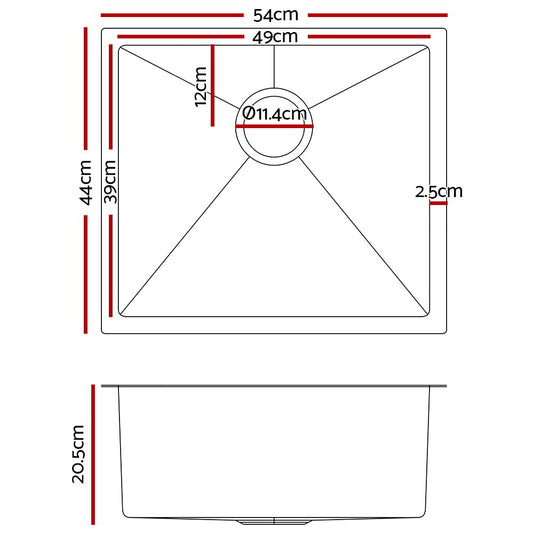 Cefito Kitchen Sink 51X45CM Stainless Steel Basin Single Bowl Laundry Silver