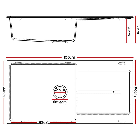 Cefito Kitchen Sink Granite Stone Laudry Single Bowl Top or Undermount 1000x500mm