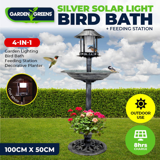Garden Greens 1M Bird Bath Solar Power With Feeding Station and Lights