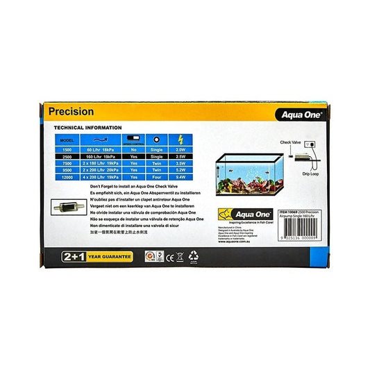 Aqua One Air Pump - 2500, 160 L/H for Compact and Low-power Aeration of Small Aquariums