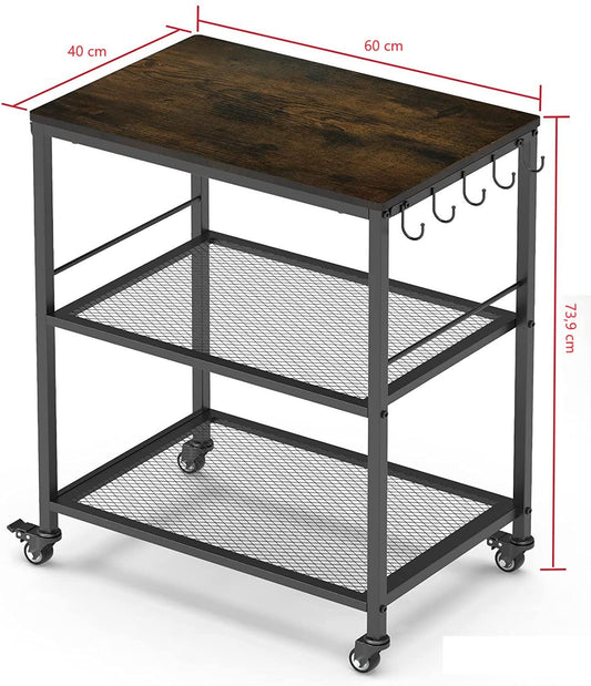 3-Tier Vintage Kitchen Serving Cart on Wheels and Wine Rack (Brown)