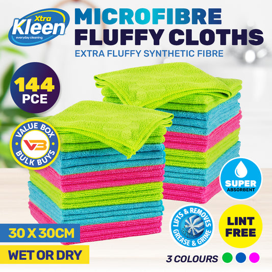 Xtra Kleen 144PCE Microfibre Fluffy Cloth Lint Free Super Absorbent 30 x 30cm