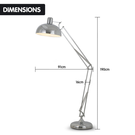 Sarantino Metal Architect Floor Lamp Shade Adjustable Height - Chrome