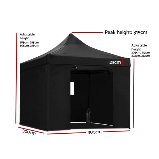 Instahut Gazebo Pop Up Marquee 3x3 Folding Wedding Tent Gazebos Shade Black