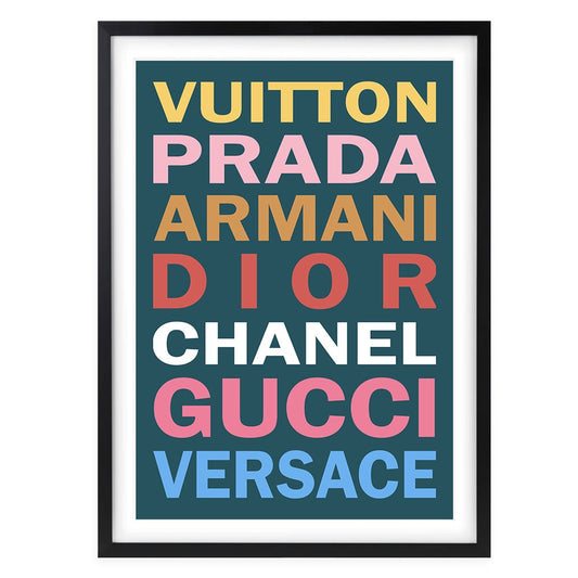 Wall Art's Fashion Names Bold Colour 2 Large 105cm x 81cm Framed A1 Art Print