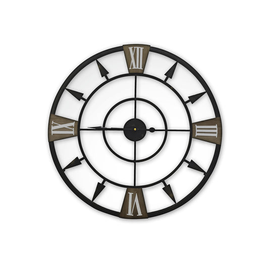 Home Master Wall Clock Antique Style Roman Numerals Metal Accents 60cm