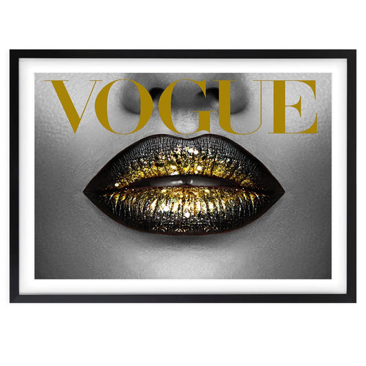 Wall Art's Gold Vogue Lips Framed A1 Art Print