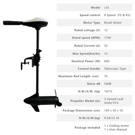 Electric Trolling Motor 12V 66LBS Thrust Saltwater Outboard Motor