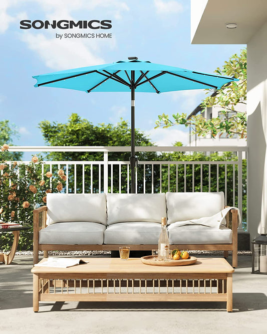SONGMICS 2.7m Solar Lighted Outdoor Patio Umbrella Lake Blue