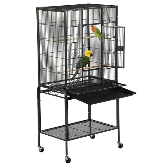 YES4PETS Medium Size Bird Cage Parrot Budgie Aviary with Perch - Black