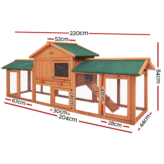 i.Pet Rabbit Hutch Chicken Coop Wooden Cage Pet Hutch 220cm x 52cm x 84cm