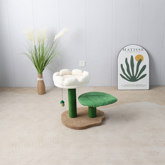 CATIO 2 Level White Camelia Flower Cat Scratching Tree