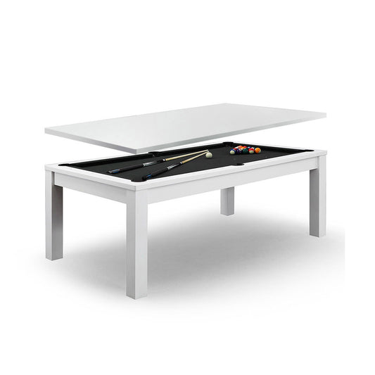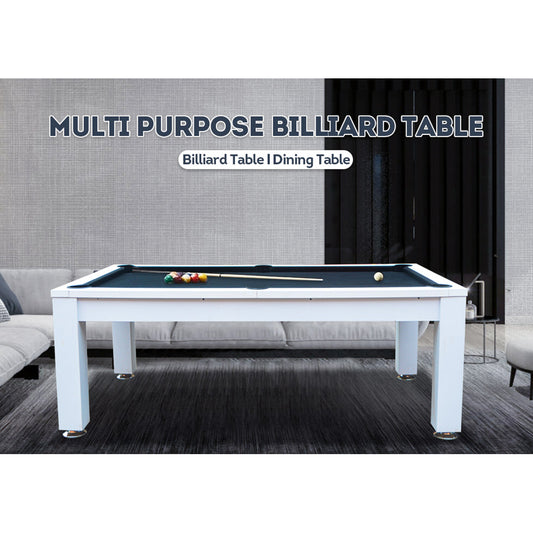 7Ft Elegance Dining Pool Table White Frame with Top Free Accessories - Black