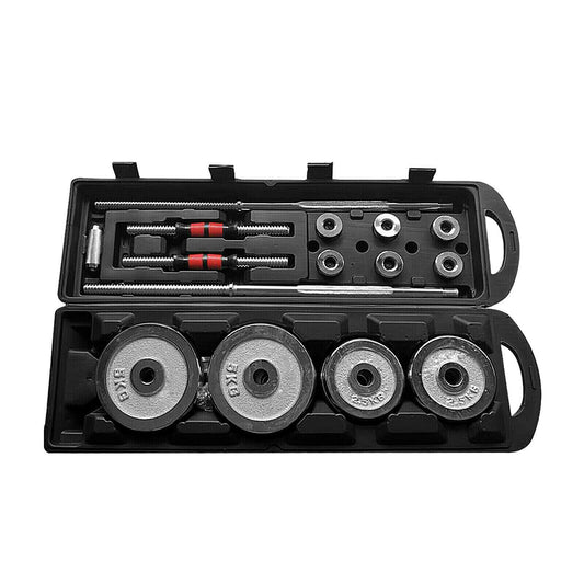 50KG Cast Iron Dumbbell & Barbell Set Weight Plates Adjustable with Case Fitness - Silver