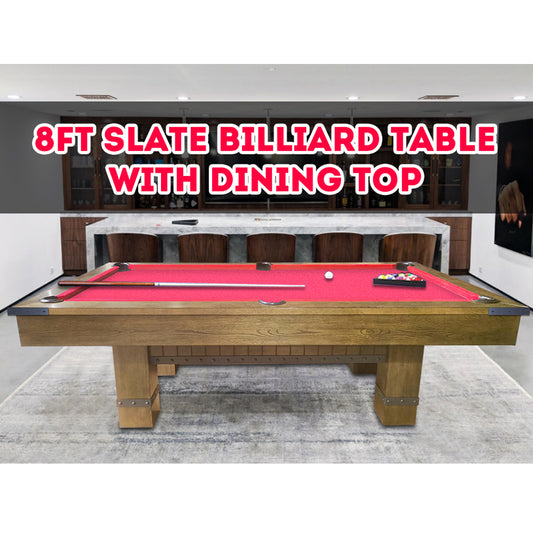 T&R SPORTS MORSE 8FT Slate Billiard Table Pack Luxury Pool / Snooker Table Solid Timber W/ Dining Top Free Accessories - Elm Color&Red