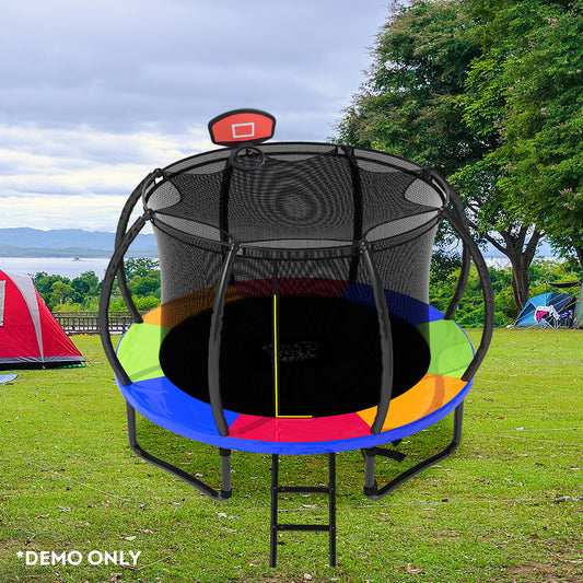 Everfit 12FT Trampoline Round Trampolines With Basketball Hoop Kids Present Gift Enclosure Safety Net Pad Outdoor Multi-coloured