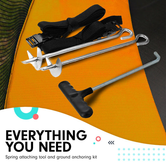 POP MASTER 6FT Curved Trampoline 5 Year Warranty Only For Frame With Free Bonus Package w/ Basketball Hoop Ladder Kids Children Outdoor - 14FT