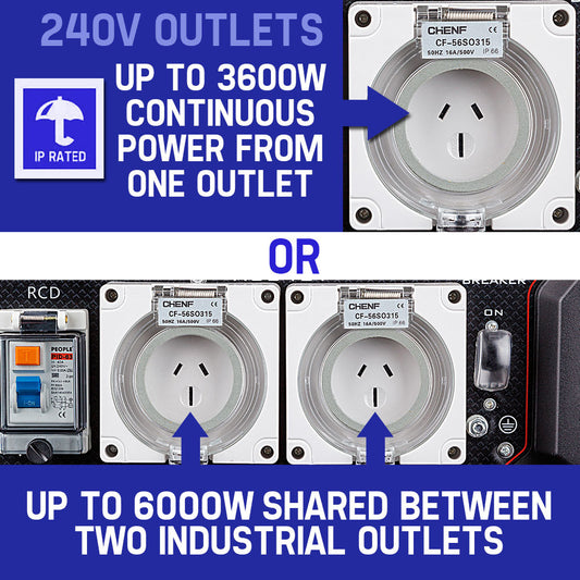 GENPOWER Portable Petrol Generator 8.4kW Max 6kW Rated Single Phase 18HP 420cc 4-Stroke Engine