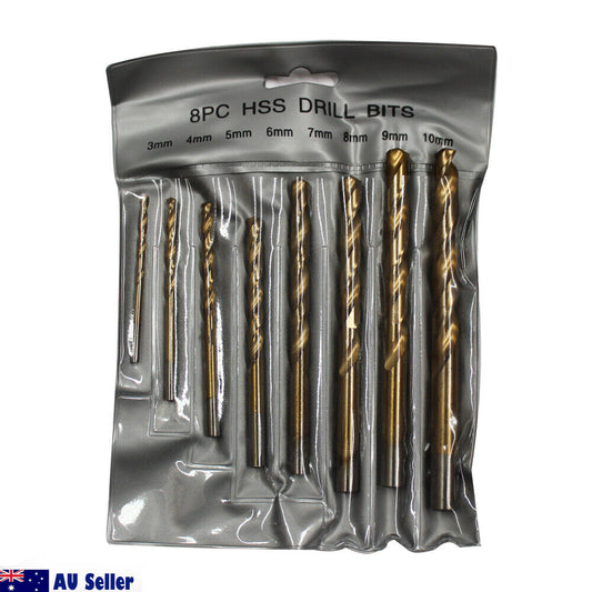 8PCS High Speed Steel Twist Drill Set 3-10mm Titanium Coated HSS Metric Quality