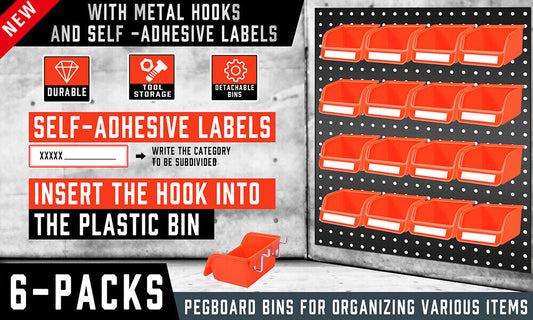 16Pc Pegboard Bins Peg Board Parts Storage With Steel Hooks Tools Organiser Tray