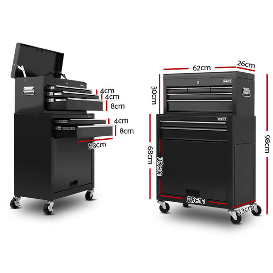 Giantz 7 Drawer Tool Box Cabinet Chest Storage Garage Toolbox Organiser Set Black