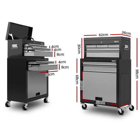 Giantz 5 Drawer Mechanic Tool Box Cabinet Storage Trolley - Black & Grey