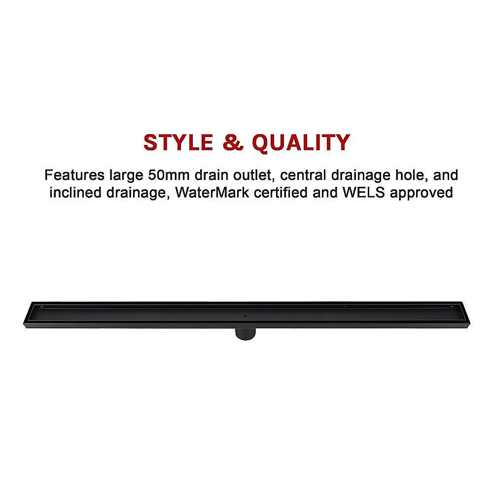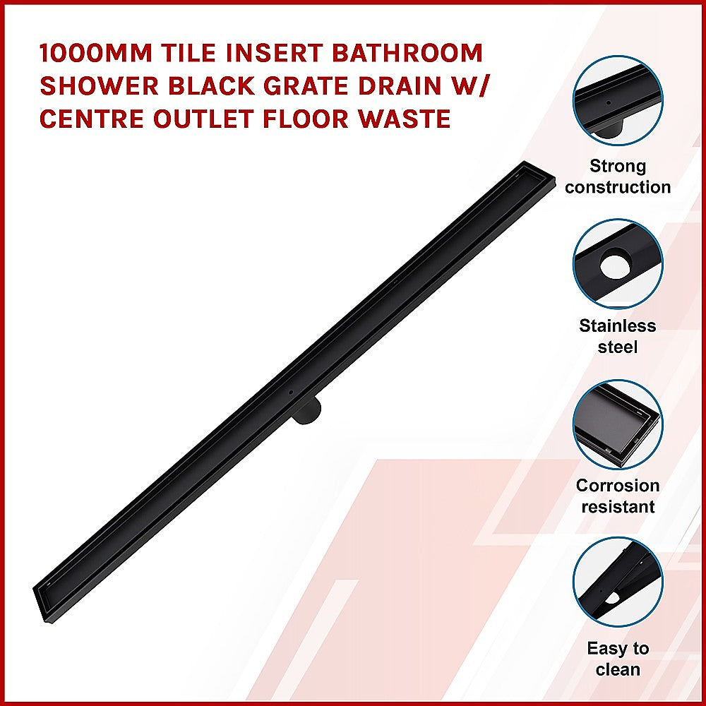 1000mm Tile Insert Bathroom Shower Black Grate Drain w/Centre outlet Floor Waste