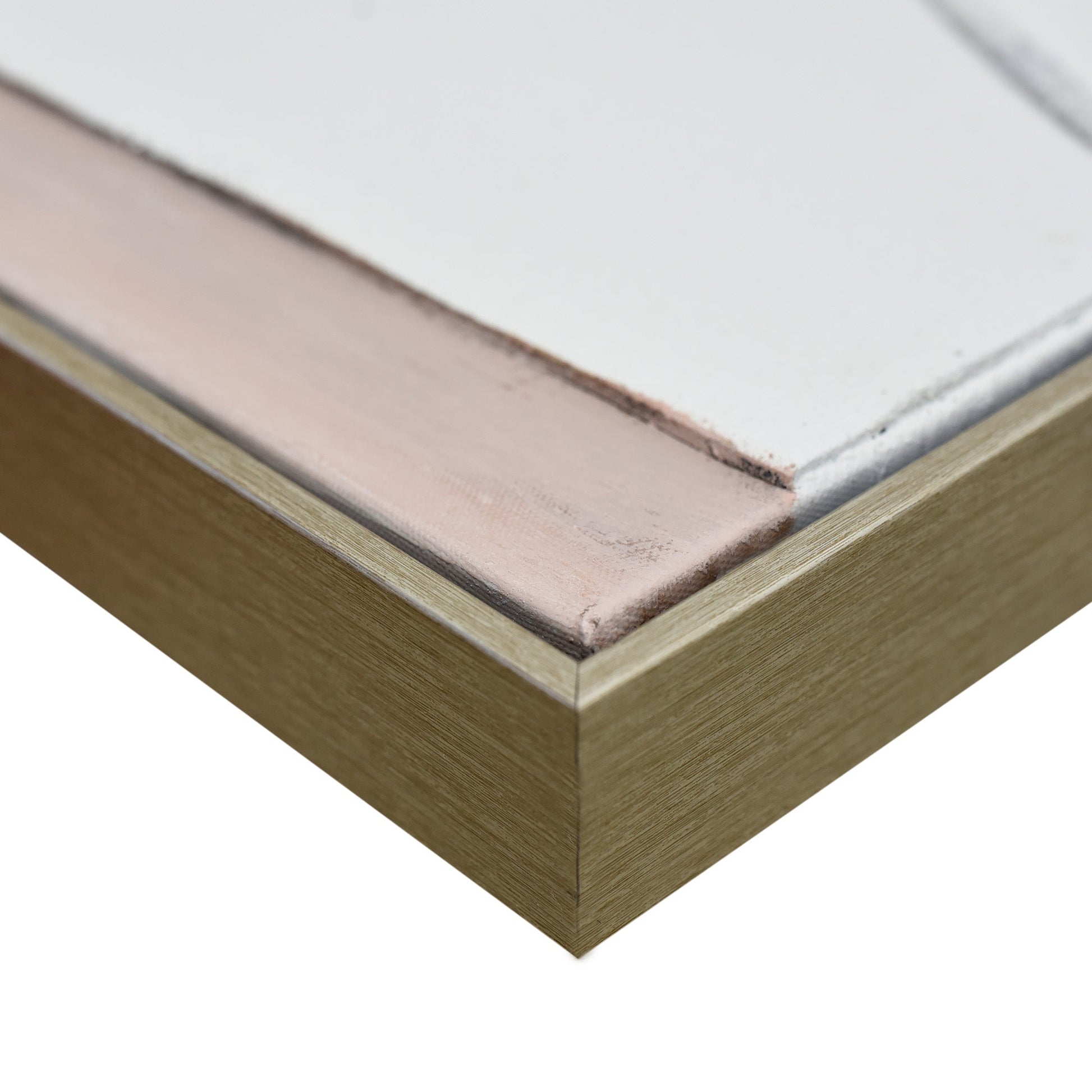 Stretched and gallery wrapped around a wooden stretcher and finished with a floating frame. There is a gap between the frame and print, which creates the floating effect and literally makes the canvas print stand out even more.