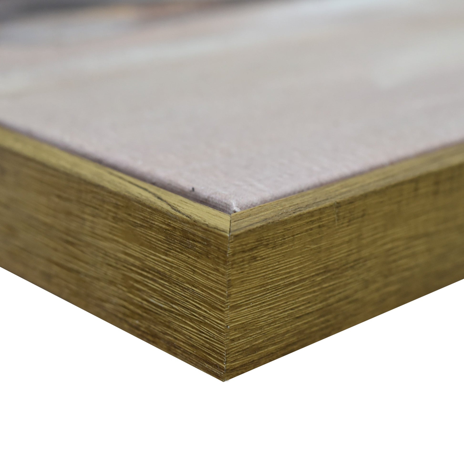 Stretched and gallery wrapped around a wooden stretcher and finished with a floating frame. There is a gap between the frame and print, which creates the floating effect and literally makes the canvas print stand out even more.