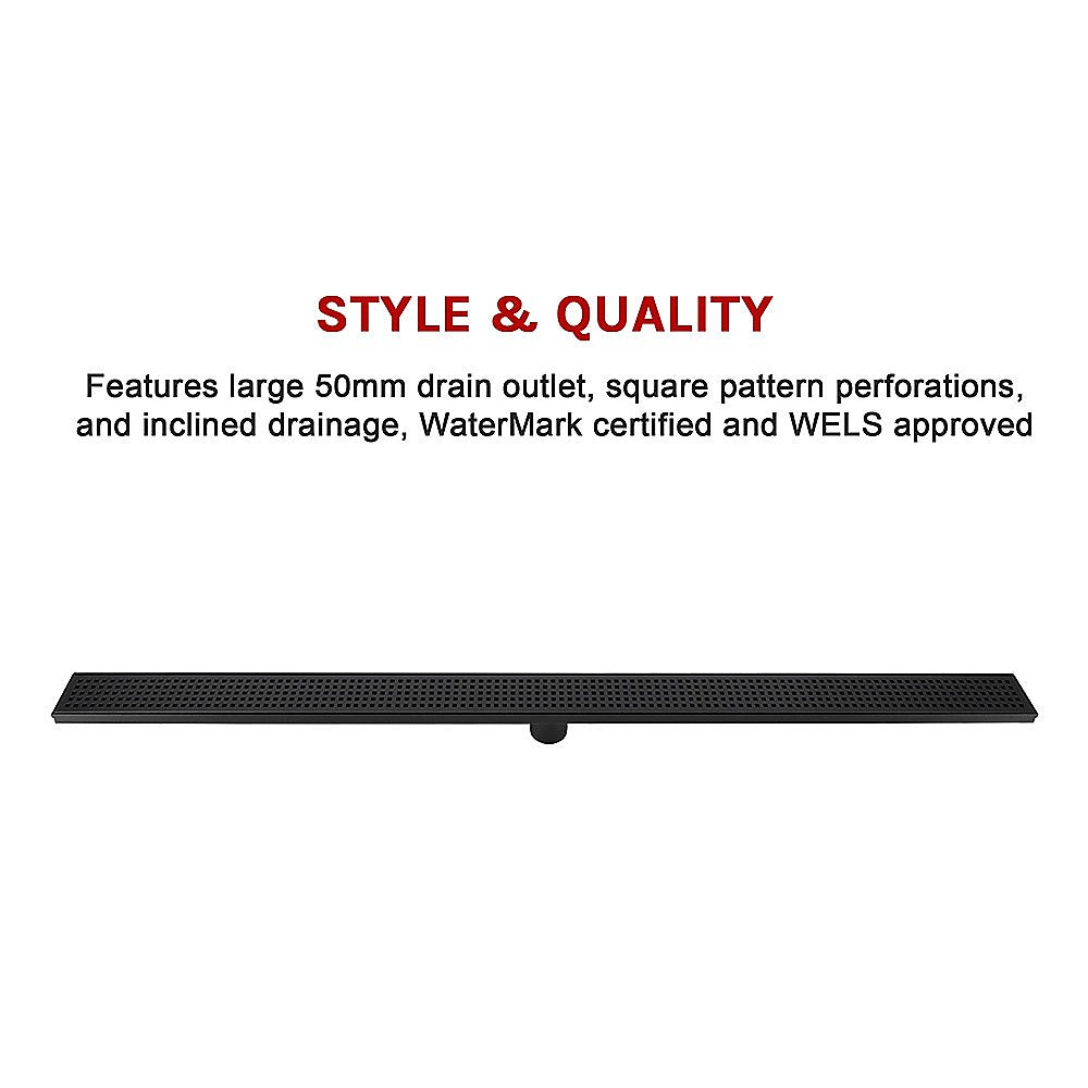 1200mm Bathroom Shower Black Grate Drain w/Centre outlet Floor Waste Square Pattern