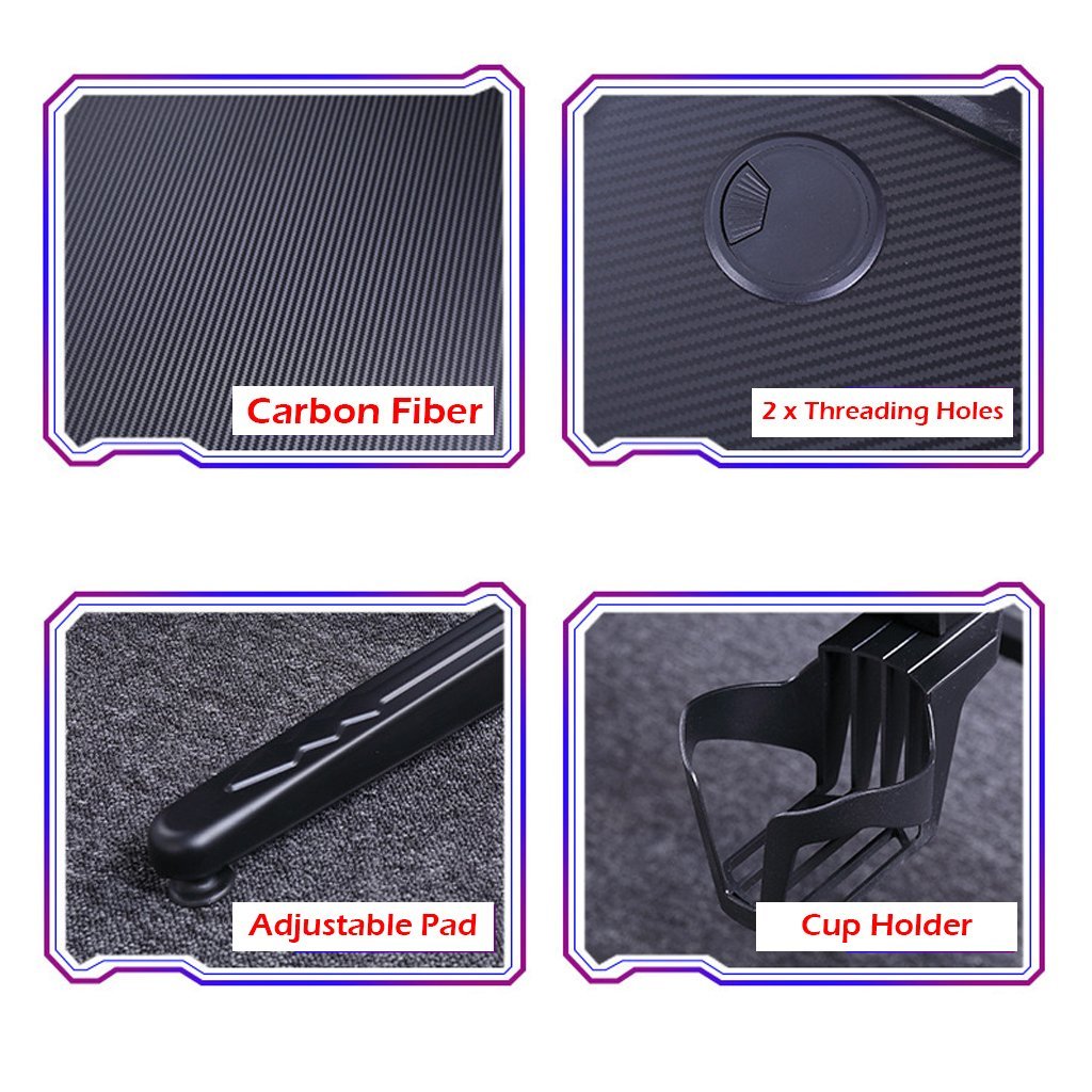 Our Gaming Desk features a spacious tabletop for ultimate gaming gear. Carbon fiber surface features with a smooth and gorgeous texture. The ergonomically contoured desktop allows a closer distance to the gaming screen. With its L-shaped legs, it provides an extremely steady construction which has a 100kg high bearing capacity. Moreover, reinforced braces, round edges, and floor protector to enhance its premium quality details. Get your game on with our stylish gaming desk.
