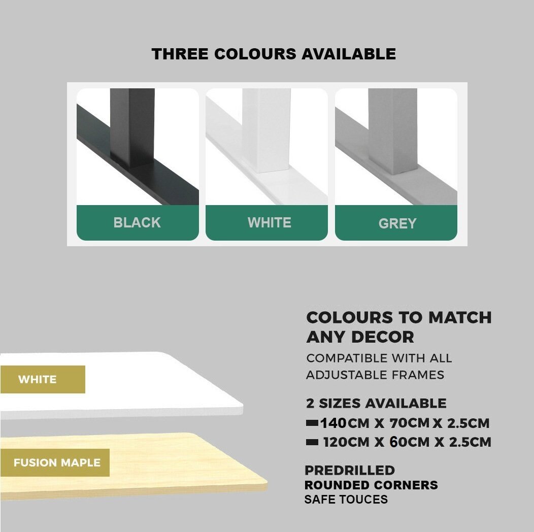 120cm Standing Desk Height Adjustable Sit Stand Black Motorised White Single Motor Frame Birch Top