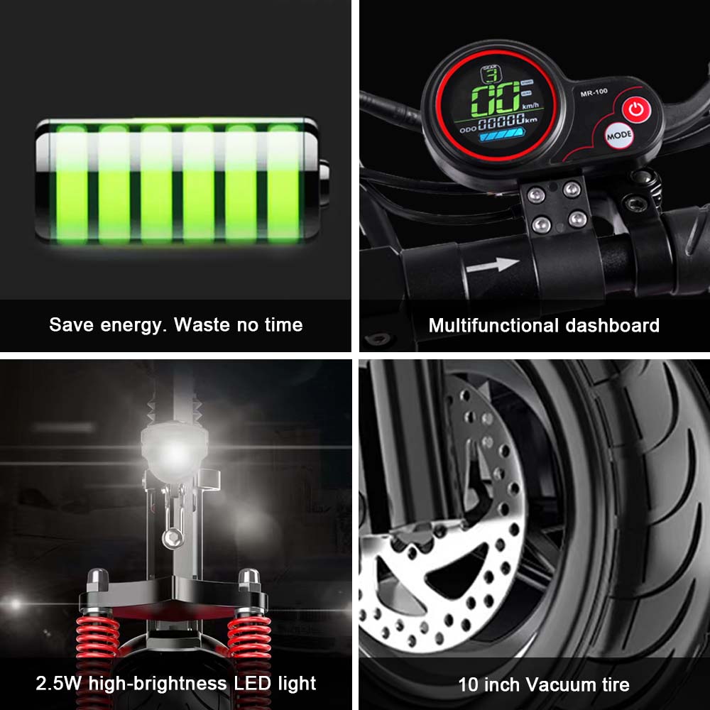 - High-capacity Battery System 48V 10AH lithium battery- provides the scooter with superb range and battery lifespan of over 500 cycles.