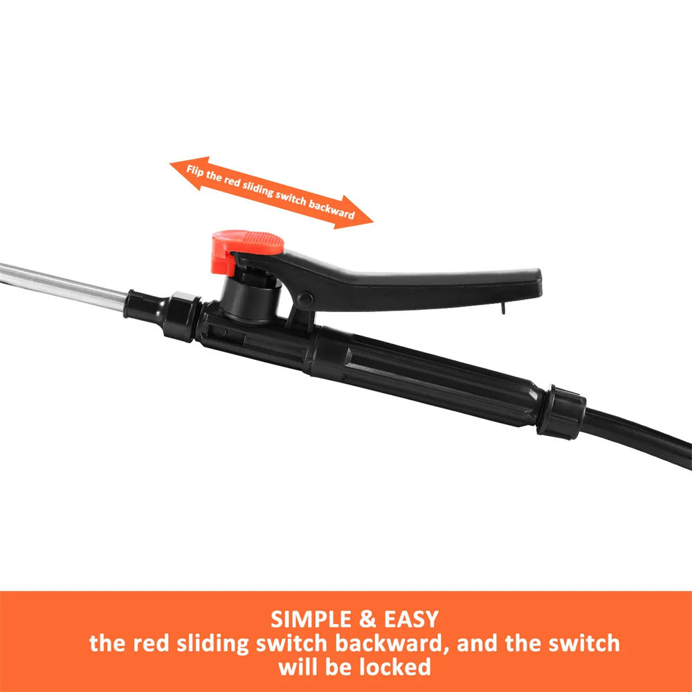 The spray gun can be locked by flipping the switch.