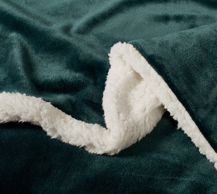 2 in 1 Teddy Sherpa Quilt Cover Set and Blanket king size emerald green
