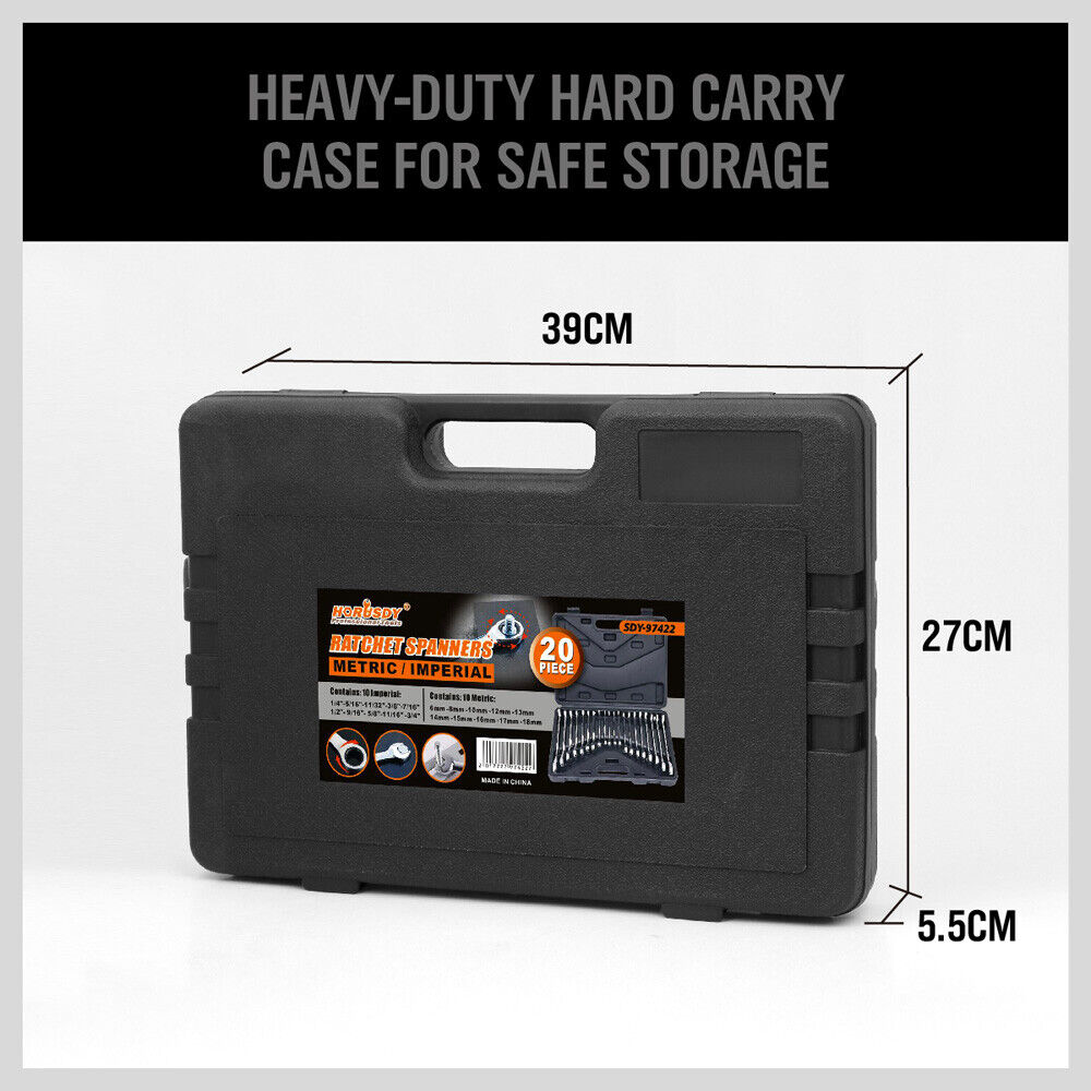20Pc Ratchet Spanner Set Metric & Imperial Combination Wrench Open End Ring CR-V