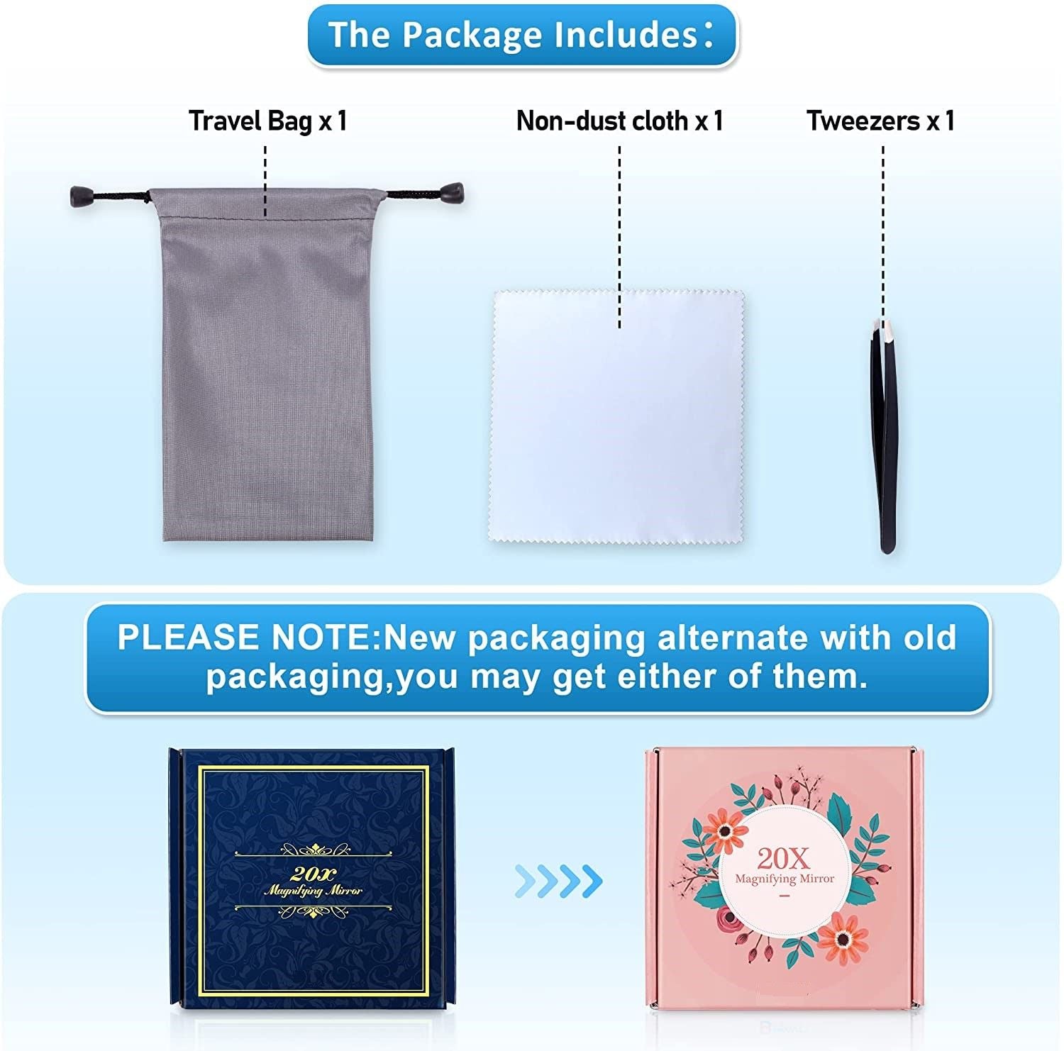 - 5 inches round magnifying mirror with 20x (the maximum magnification on the market) with guaranteed quality.