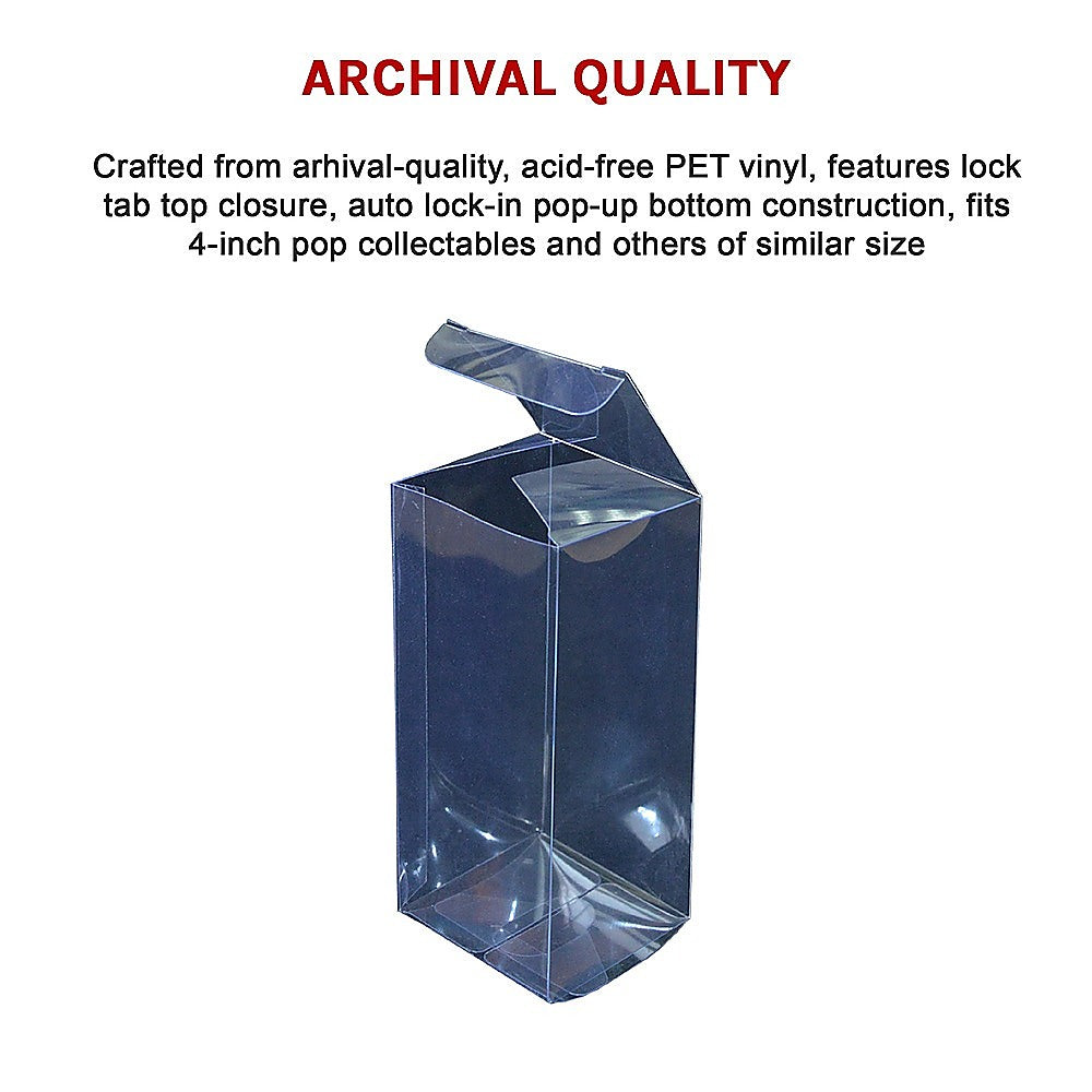 These crystal-clear boxes are crafted from archival-quality PET. These 35-mil-thick boxes will cushion your collectables from the bumps and accidental falls that occasionally happen, despite how carefully you store them. Perfect for storage when you move, these protector cases will keep your most precious collectables safe and sound.