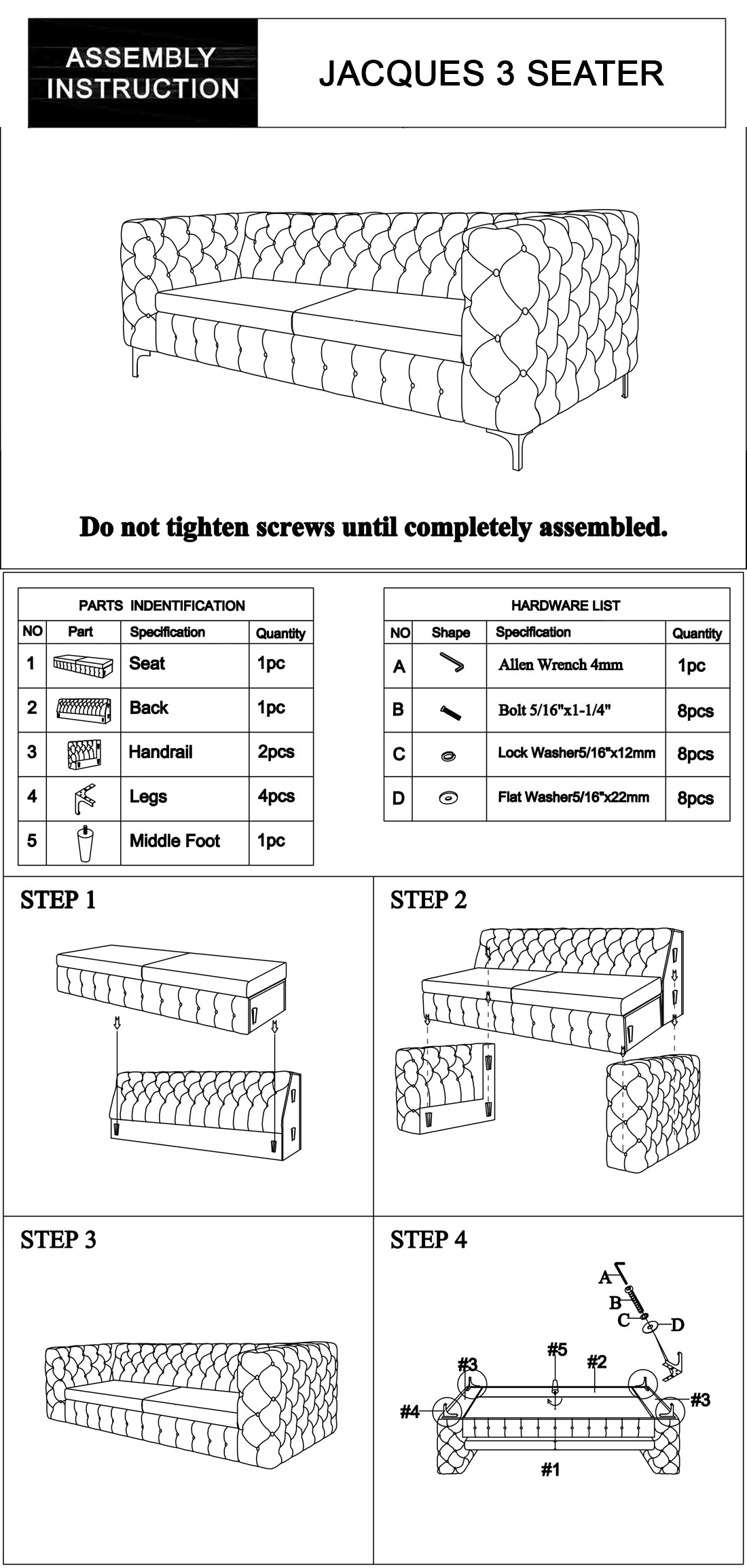 This stylish sofa comes with finely decorated cushion cover with deep quilting and Velvet fabric covered buttons. Inside the upholstery, there is high-density foam to ensure superior comfort.