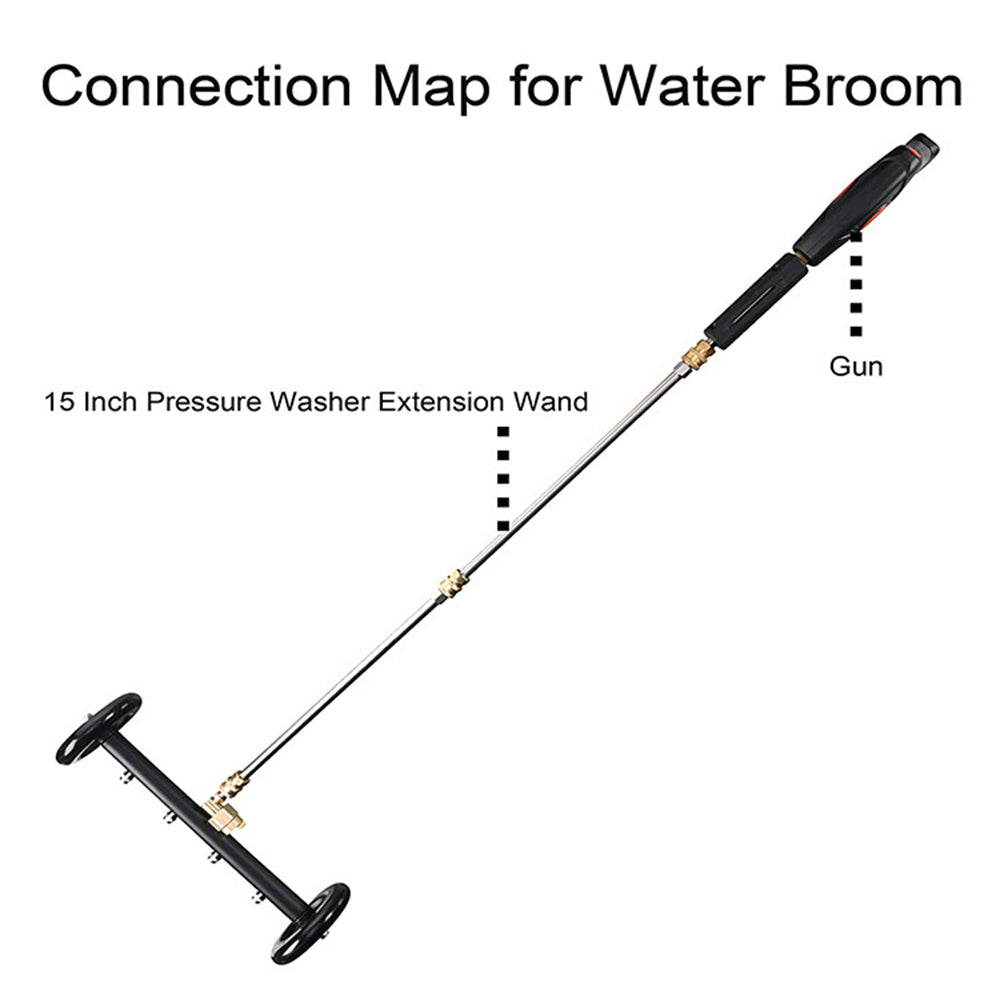 DUAL FUNCATIONS for USING: It can be used between undercarriage cleaner or water broom. You just need to pull out the nut of the pivoting coupler at the end of the washer, the nut will lock automatically when rotate the rotary coupler to the end.