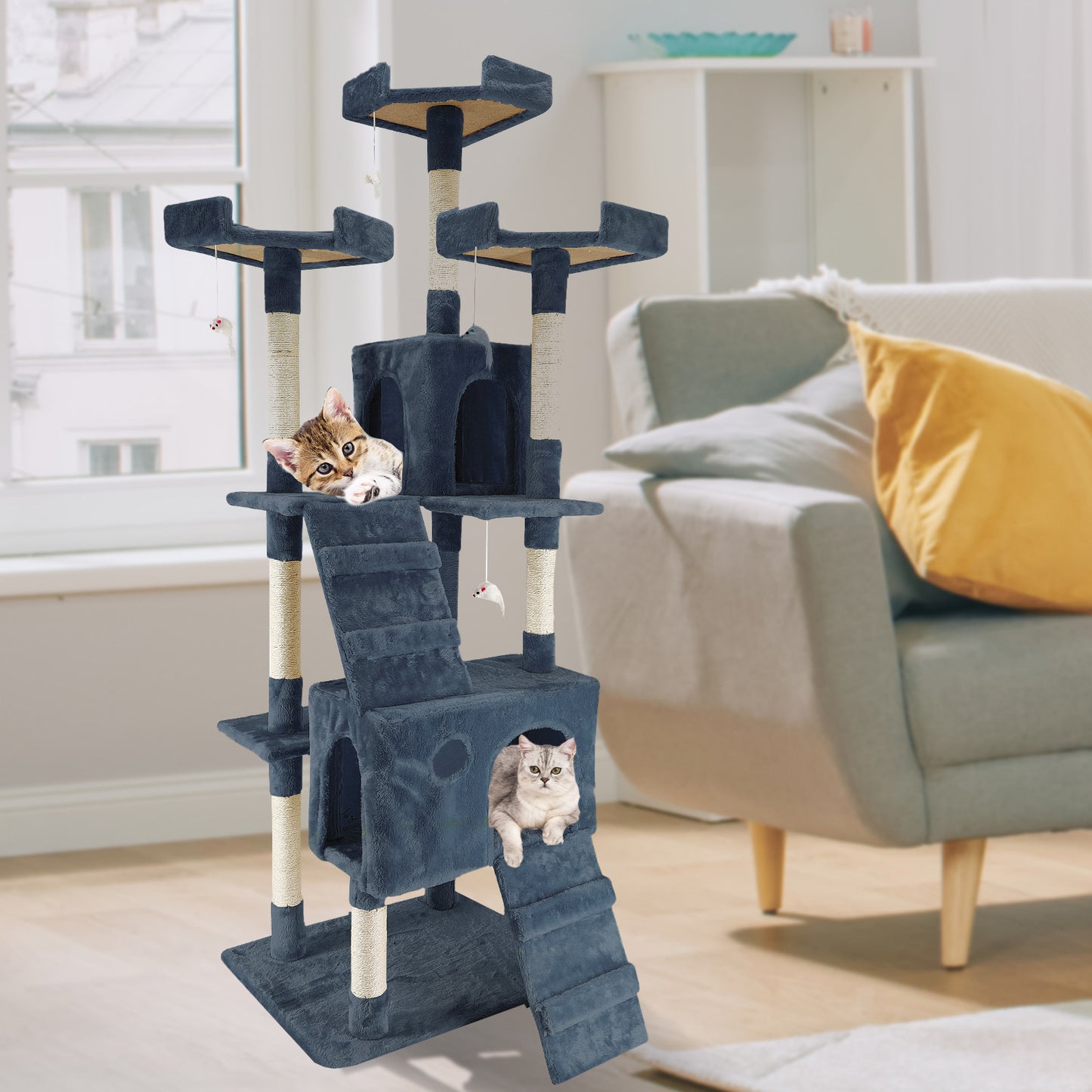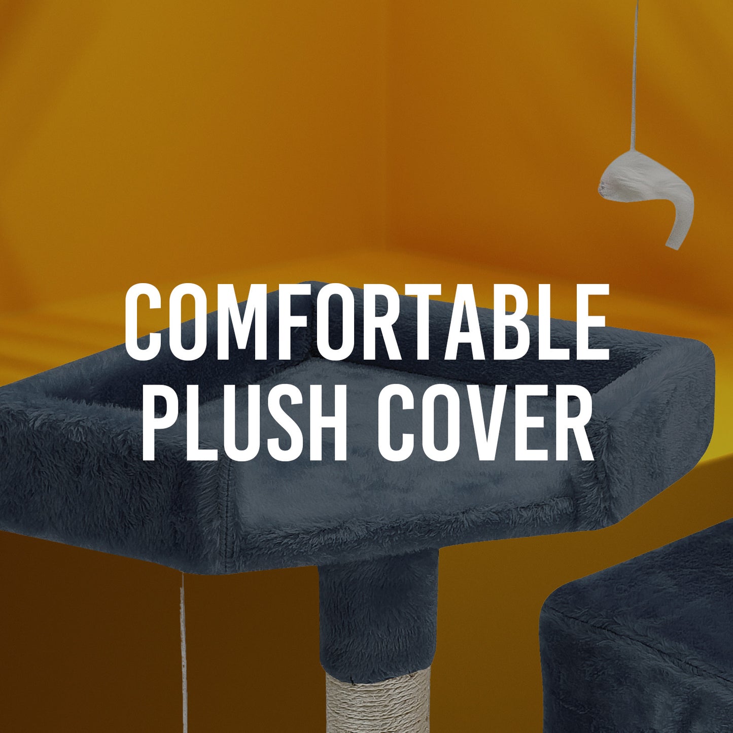 Curious cats will love to explore the multilevel and multi-zoned design that provides various napping positions, hiding spots, and a place to divert their scratching instincts.