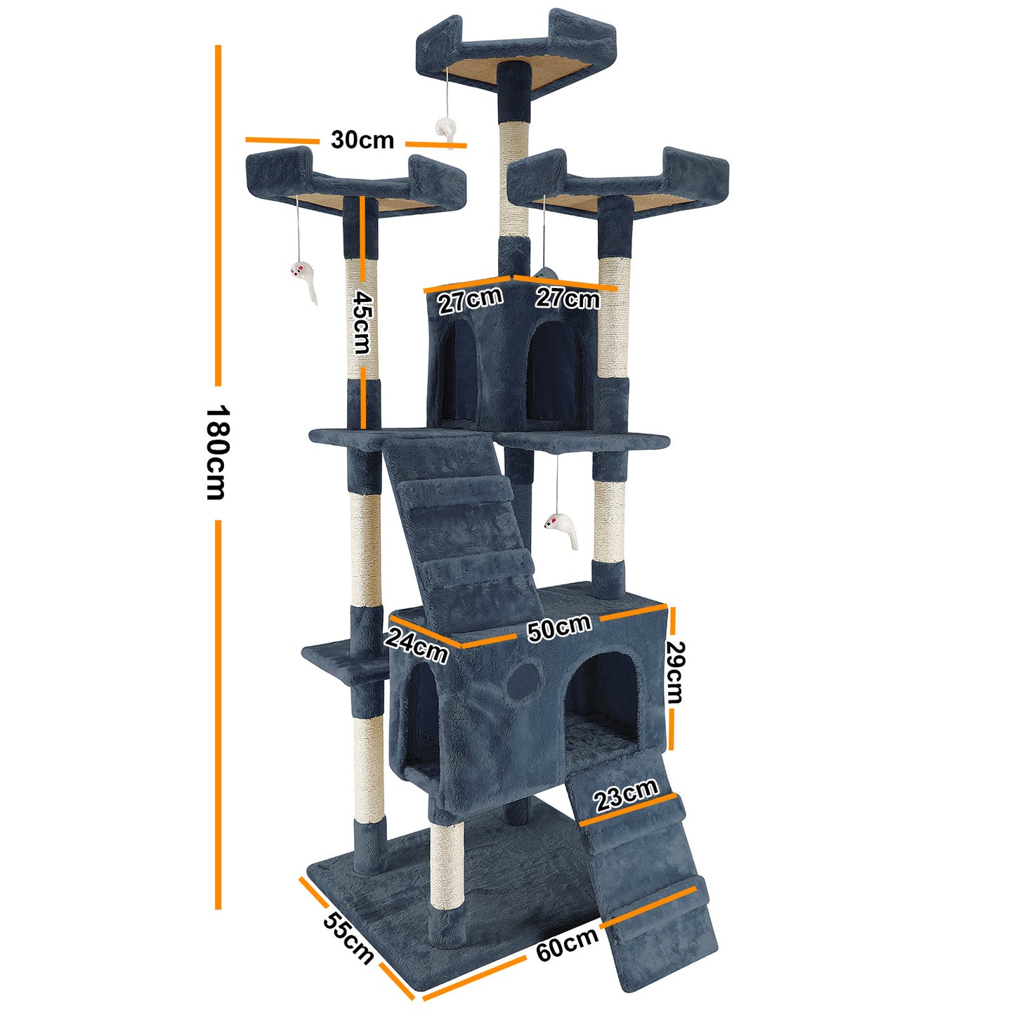 4Paws Cat Tree Scratching Post House Furniture Bed Luxury Plush Play 180cm - Grey