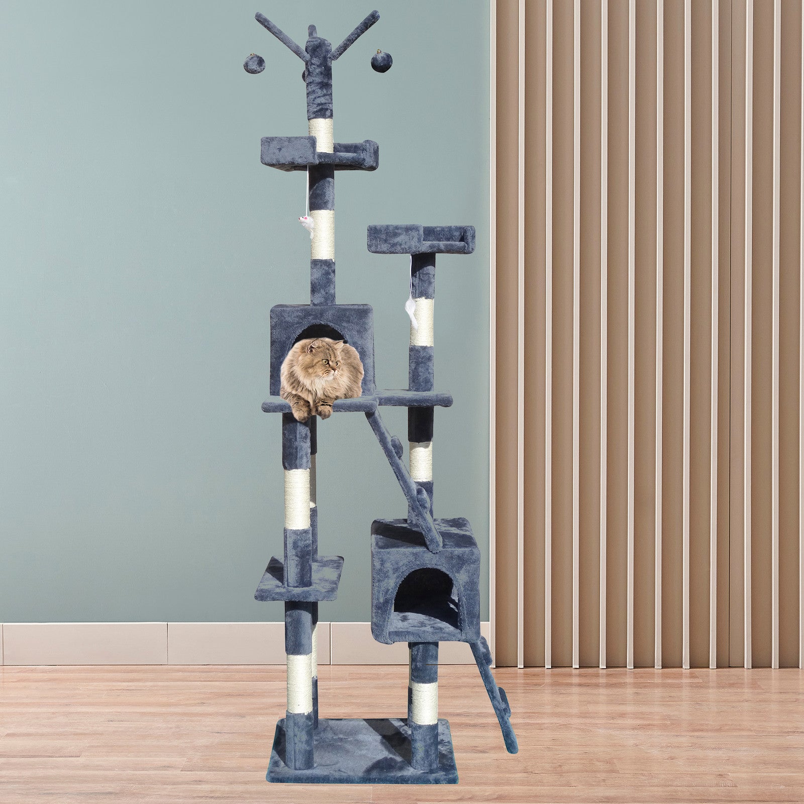 4Paws Cat Tree Scratching Post House Furniture Bed Luxury Plush Play 200cm - Grey